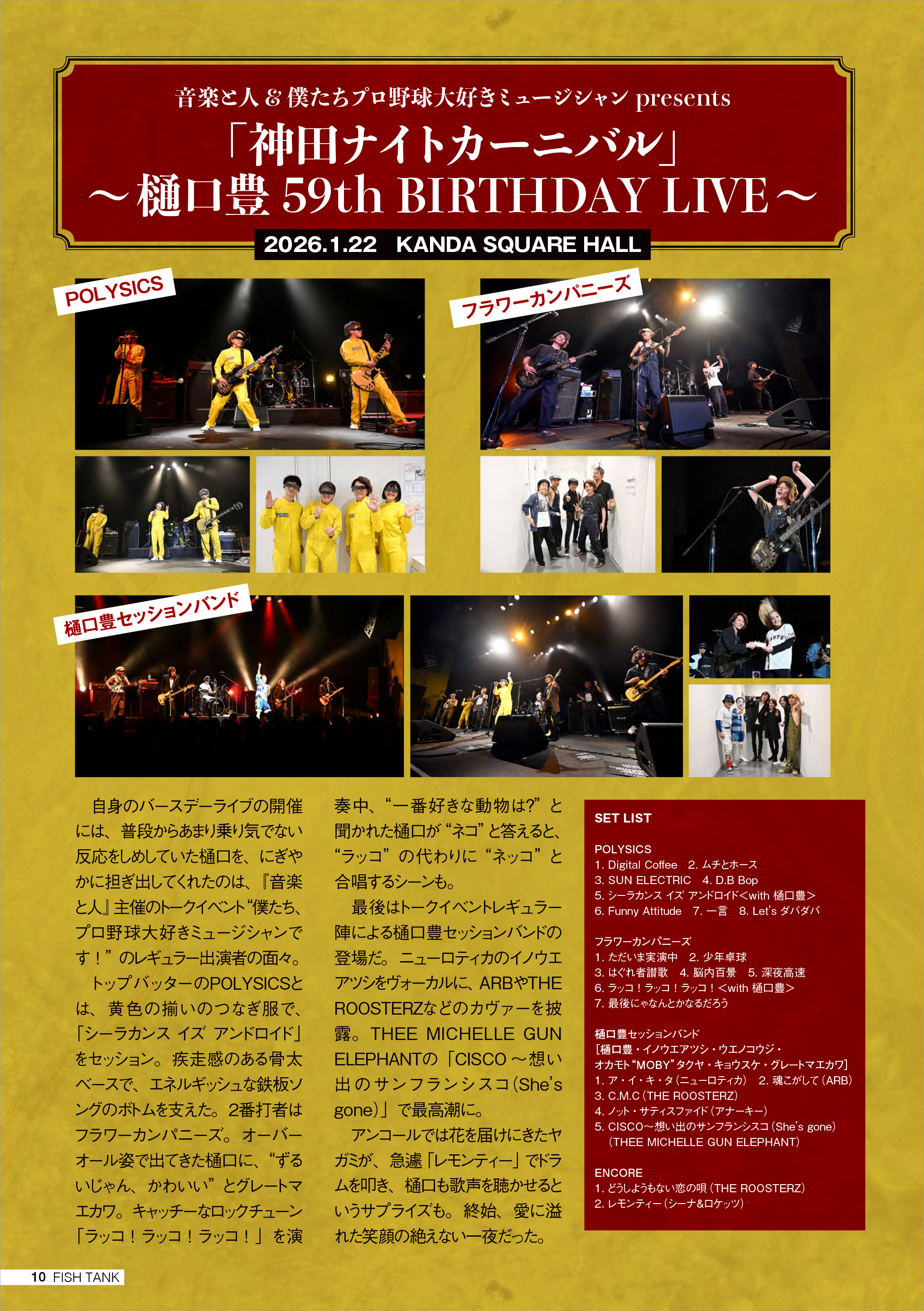 P10「神田ナイトカーニバル〜樋󠄀口豊59th BIRTHDAY LIVE〜」におきまして、掲載内容に誤りがございました。
